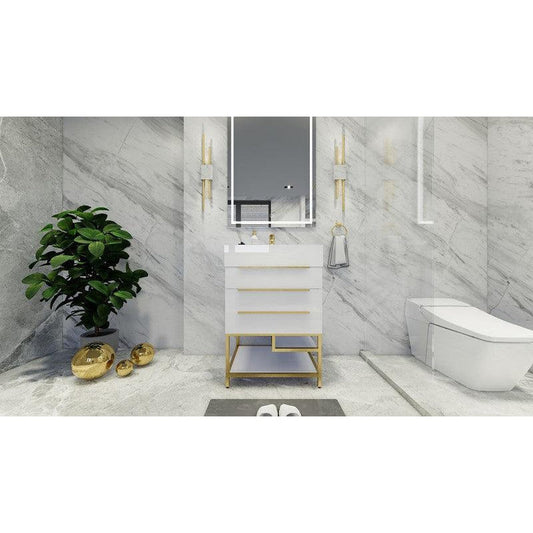 Moreno Bath Bethany 24" High Gloss White Freestanding Vanity With Single Reinforced White Acrylic Sink