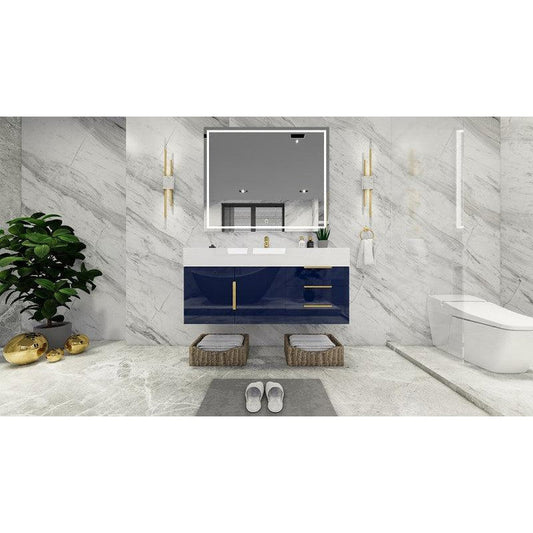 Moreno Bath Bethany 48" High Gloss Night Blue Wall-Mounted Vanity With Single Reinforced White Acrylic Sink