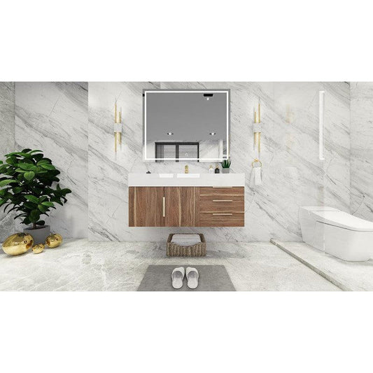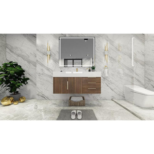 Moreno Bath Bethany 48" Rosewood Wall-Mounted Vanity With Single Reinforced White Acrylic Sink