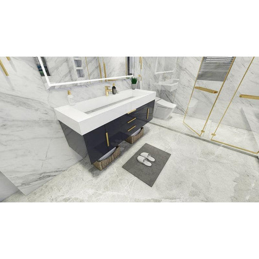 Moreno Bath Bethany 60" High Gloss Gray Wall-Mounted Vanity With Single Reinforced White Acrylic Sink