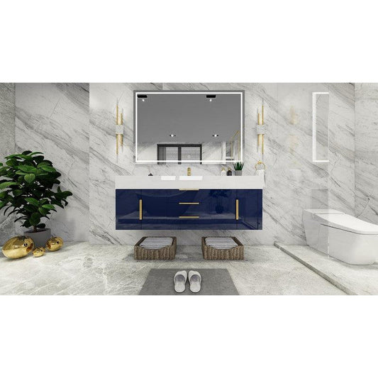 Moreno Bath Bethany 60" High Gloss Night Blue Wall-Mounted Vanity With Single Reinforced White Acrylic Sink