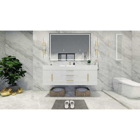 Moreno Bath Bethany 60" High Gloss White Wall-Mounted Vanity With Single Reinforced White Acrylic Sink