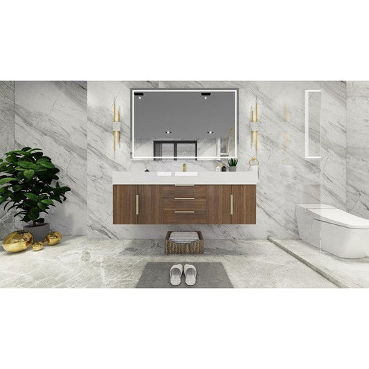 Moreno Bath Bethany 60" Rosewood Wall-Mounted Vanity With Single Reinforced White Acrylic Sink