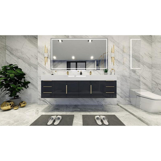 Moreno Bath Bethany 72" High Gloss Gray Wall-Mounted Vanity With Double Reinforced White Acrylic Sinks