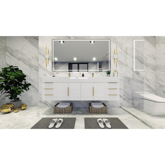 Moreno Bath Bethany 72" High Gloss White Wall-Mounted Vanity With Double Reinforced White Acrylic Sinks