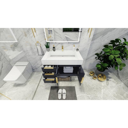 Moreno Bath Bethany 42" High Gloss Gray Wall-Mounted Vanity With Right Side Drawers and Single Reinforced White Acrylic Sink