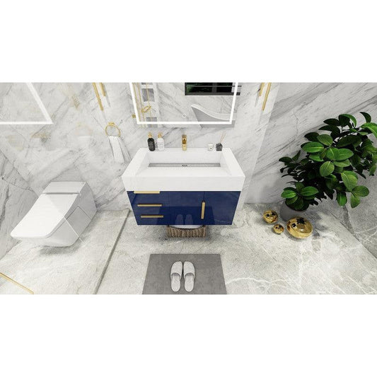 Moreno Bath Bethany 36" High Gloss Night Blue Wall-Mounted Vanity With Right Side Drawers and Single Reinforced White Acrylic Sink