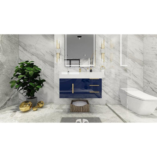 Moreno Bath Bethany 42" High Gloss Night Blue Wall-Mounted Vanity With Right Side Drawers and Single Reinforced White Acrylic Sink