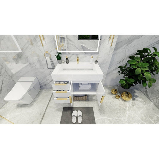 Moreno Bath Bethany 36" High Gloss White Wall-Mounted Vanity With Right Side Drawers and Single Reinforced White Acrylic Sink