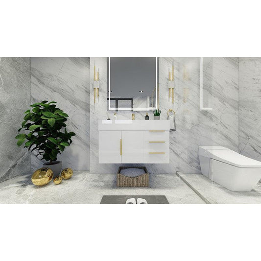 Moreno Bath Bethany 42" High Gloss White Wall-Mounted Vanity With Right Side Drawers and Single Reinforced White Acrylic Sink