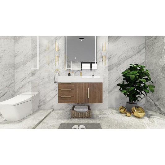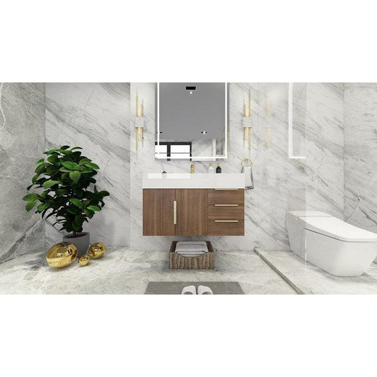 Moreno Bath Bethany 36" Rosewood Wall-Mounted Vanity With Right Side Drawers and Single Reinforced White Acrylic Sink
