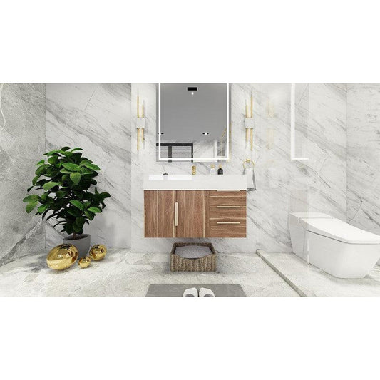 Moreno Bath Bethany 36" White Oak Wall-Mounted Vanity With Right Side Drawers and Single Reinforced White Acrylic Sink