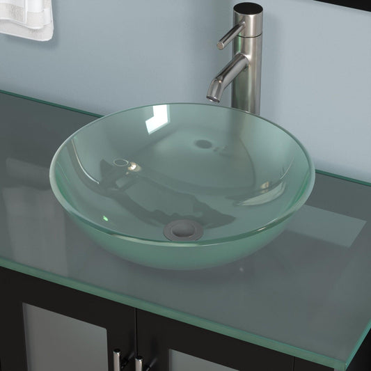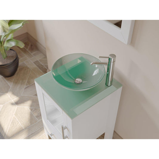 Cambridge Plumbing 18" White Single Wood Vanity Set With Tempered Glass Countertop And Circular Vessel Sink With Brushed Nickel Plumbing Finish