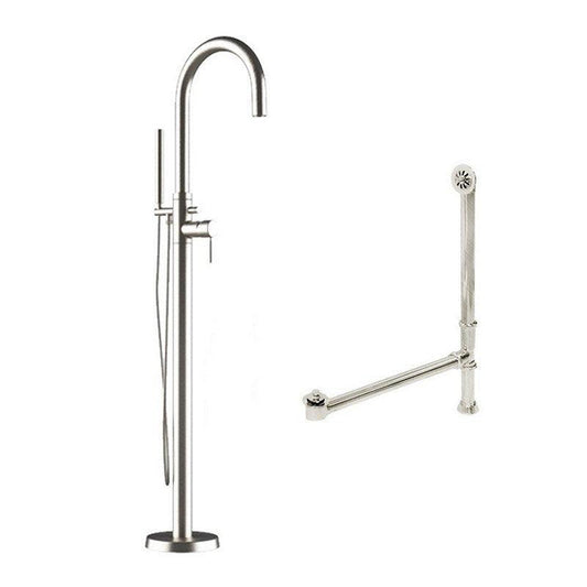 Cambridge Plumbing Complete Plumbing Package In Brushed Nickel Including Free Standing Modern Gooseneck Style Faucet With Hand Held Wand Shower, Supply Lines, Drain And Overflow Assembly