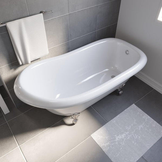 Cambridge Plumbing Amber Waves 66" Gloss White Acrylic Single Slipper Clawfoot Bathtub With No Deck Holes And Polished Chrome Clawfeet