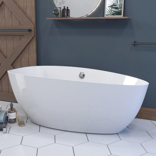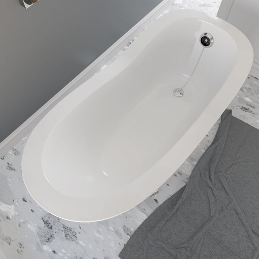 Cambridge Plumbing 65" White Cultured Marble Double Slipper Freestanding Bathtub With No Faucet Holes