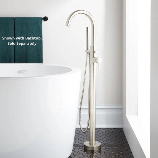 Cambridge Plumbing Brushed Nickel Modern Floor Mounted Tub Filler Faucet With Shower Wand