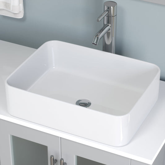 Cambridge Plumbing 63" White Wood Double Vanity Set With Porcelain Countertop And Rectangular Vessel Sink With Polished Chrome Plumbing Finish