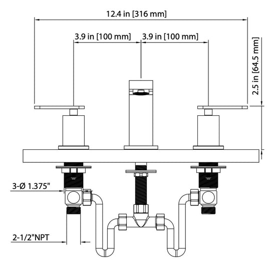 Flusso Faucets Serie 110 12" Three-Hole Chrome Solid Brass Deck-Mounted Widespread Bathroom Sink Faucet With Overflow Pop-Up Drain