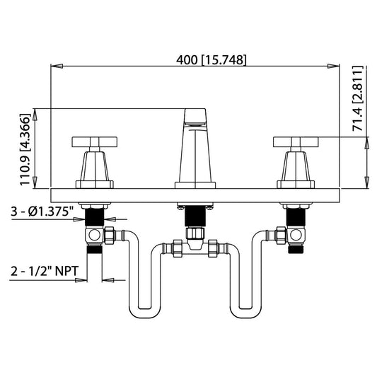 Flusso Faucets Serie 250 14" Three-Hole Chrome Solid Brass Deck-Mounted Widespread Bathroom Sink Faucet With Overflow Pop-Up Drain