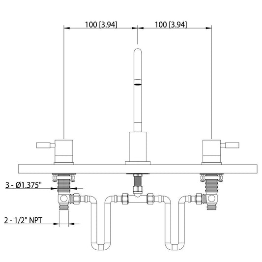 Flusso Faucets Serie 250 14" Three-Hole Brushed Nickel PVD Solid Brass Deck-Mounted Widespread Bathroom Sink Faucet With Overflow Pop-Up Drain