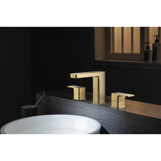 Flusso Faucets Serie 196 13" Three-Hole Satin Brass PVD Solid Brass Deck-Mounted Widespread Bathroom Sink Faucet With Overflow Pop-Up Drain
