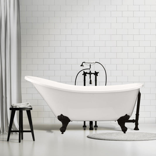 Altair Fandi 64" x 28" White Acrylic Clawfoot Bathtub With Matte Black Drain and Overflow