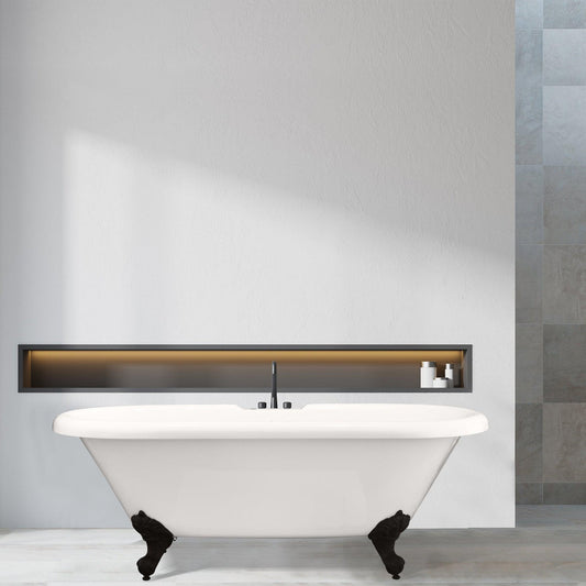 Altair Kerta 67" x 29" White Acrylic Clawfoot Bathtub With Matte Black Drain and Overflow