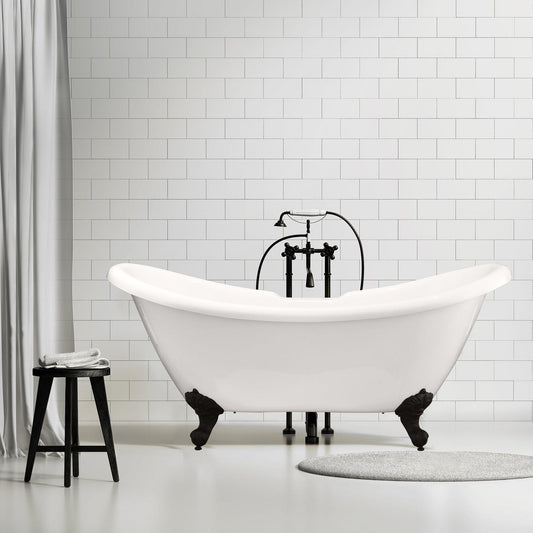 Cambridge Plumbing 70" White Acrylic Double Ended Clawfoot Bathtub With Deck Holes With Oil Rubbed Bronze Feet