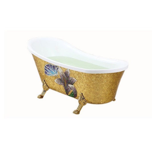 Fontana Sierra 59" x 30" Single Slipper Gold Oval Freestanding Indoor Soaking Acrylic Bathtub
