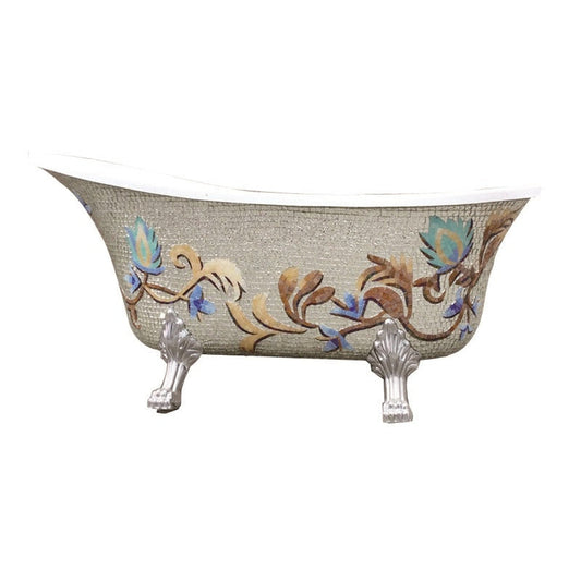 Fontana Sierra 59" x 31" 1-Person Single Slipper Silver Oval Freestanding Mosaic Indoor Soaking Acrylic Bathtub