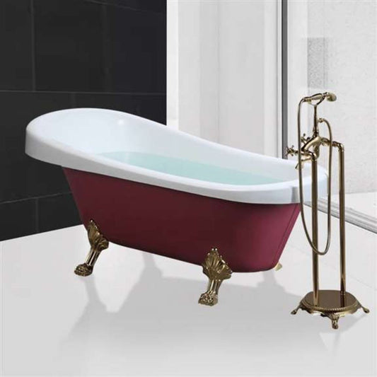 Fontana Sierra 67" x 32" Single Slipper Red Oval Freestanding Indoor Soaking Acrylic Bathtub
