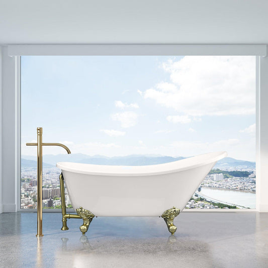 Altair Fandi 64" x 28" White Acrylic Clawfoot Bathtub With Brushed Brass Drain and Overflow