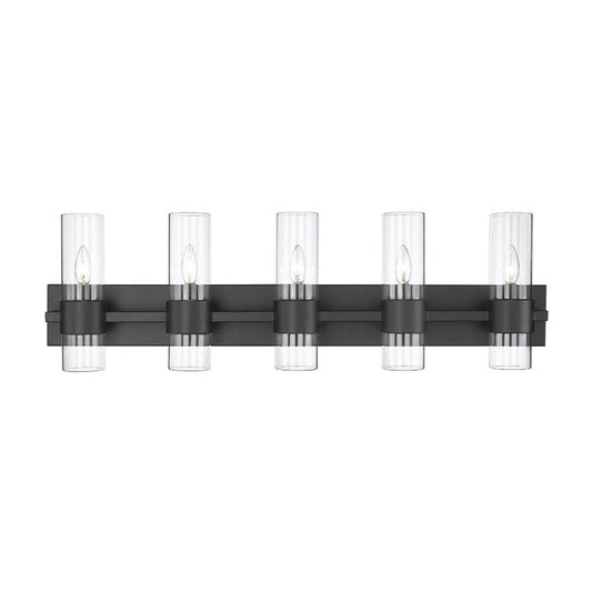 Z-Lite Lawson 38" 5-Light Matte Black Vanity Light With Clear Glass Shade