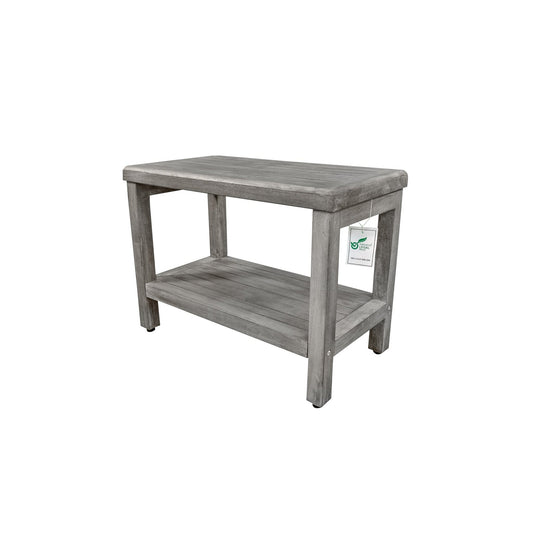 CoastalVogue Eleganto 24" Antique Gray Solid Teak Wood Shower Bench With Shelf