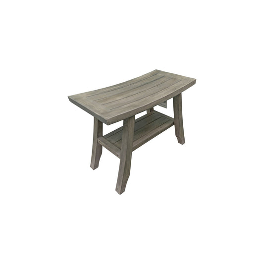 CoastalVogue Satori 24" Antique Gray Solid Teak Wood Shower Bench With Shelf