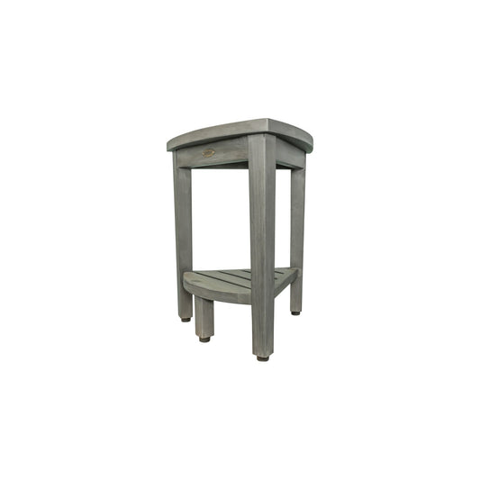 CoastalVogue Serenity 18" Antique Gray Solid Teak Wood Shower Bench With Shelf