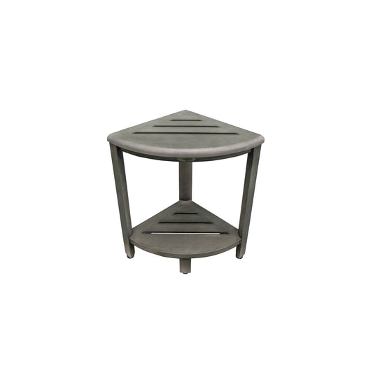 CoastalVouge SnazzyCorner 17" Antique Gray Solid Teak Wood Corner Shower Bench With Shelf