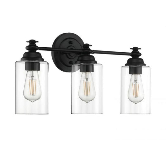 Craftmade Dardyn 22" 3-Light Flat Black Vanity Light With Clear Glass Shades