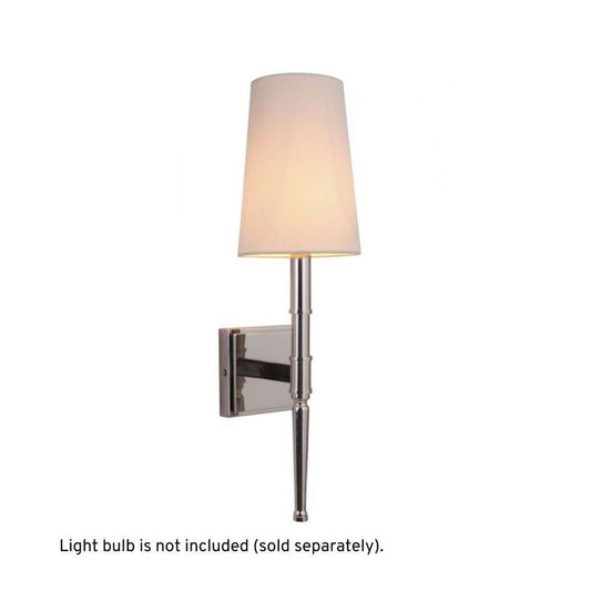 Craftmade Ella 5" x 12" 1-Light Polished Nickel Wall Sconce With White Linen Shade