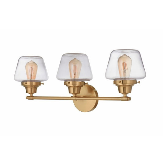 Craftmade Essex 28" 3-Light Satin Brass Vanity Light With Clear Glass Shades