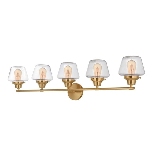 Craftmade Essex 48" 5-Light Satin Brass Vanity Light With Clear Glass Shades