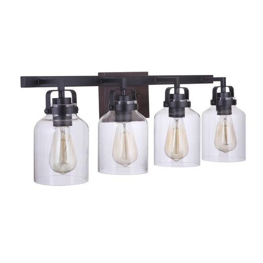 Craftmade Foxwood 29" 4-Light Flat Black and Dark Teak Vanity Light With Clear Glass Shades