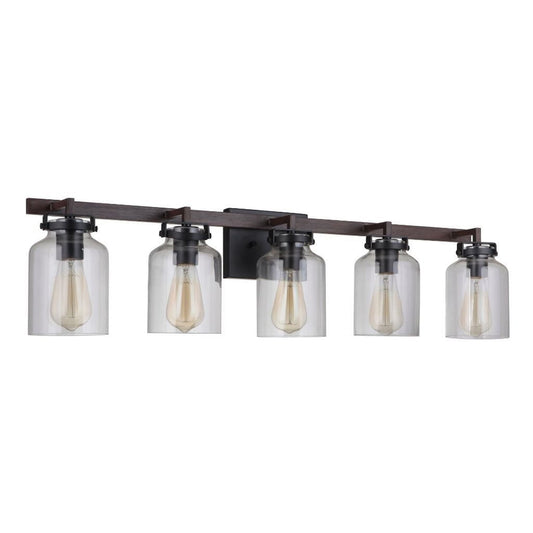 Craftmade Foxwood 37" 5-Light Flat Black and Dark Teak Vanity Light With Clear Glass Shades