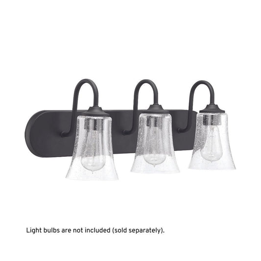 Craftmade Gwyneth 24" 3-Light Flat Black Vanity Light With Clear Seeded Glass Shades