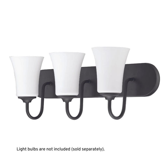 Craftmade Gwyneth 24" 3-Light Flat Black Vanity Light With White Frosted Glass Shades