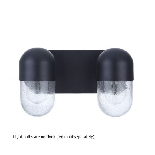 Craftmade Pill 14" 2-Light Flat Black Vanity Light With Clear Seeded Glass Shades