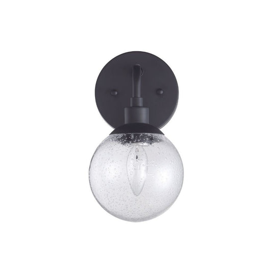 Craftmade Que 6" x 11" 1-Light Flat Black Wall Sconce With Clear Seeded Glass Globe Shade