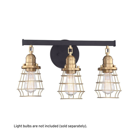 Craftmade Thatcher 19" 3-Light Flat Black Vanity Light With Satin Brass Metal Wire Shades