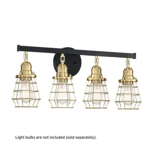 Craftmade Thatcher 26" 4-Light Flat Black Vanity Light With Satin Brass Metal Wire Shades